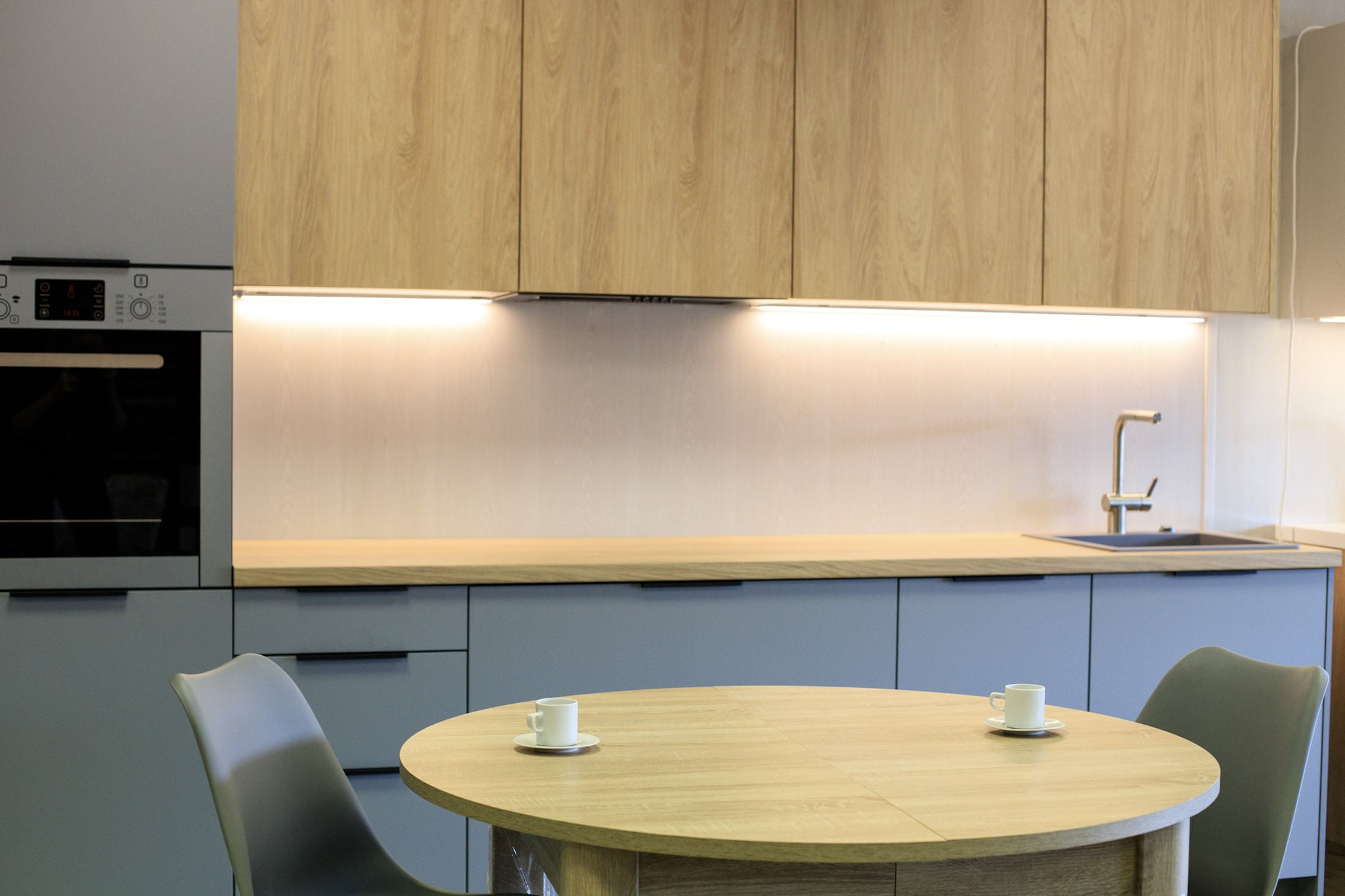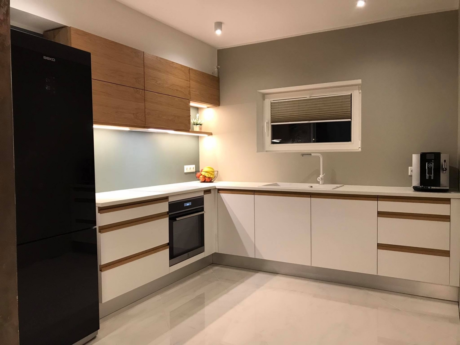 Mõni köök ei ole lihtsalt “mööbel seina ääres”. Mõni köök on koht, kuhu hommikul esimese asjana astud – veel unise pilguga, aga juba tead, et siit algab sinu päev. Selle köögi puhul tahtsimegi luua tunde, et ruum on korraga rahulik ja pidulik: matt-valged alumised uksed loovad puhta fooni, ning pehmes…